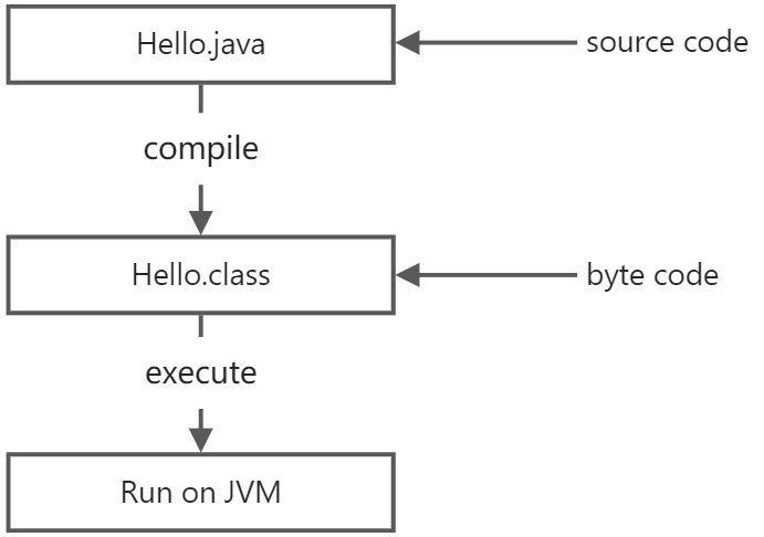 Java源码本质上是一个文本文件,我们需要先用javac把Hello.java编译成字节码文件Hello.class,然后,用java命令执行这个字节码文件: