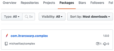 完整的配置请参考complex项目,这是一个非常简单的支持复数运算的库。 使用该Artifact时,因为GitHub的Package只能作为私有仓库使用,所以除了在使用方的pom.xml中声明<repository>外: