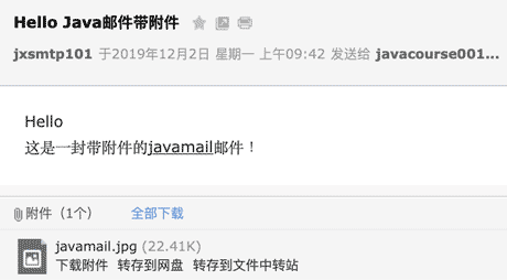 要在电子邮件中携带附件,我们就不能直接调用message.setText()方法,而是要构造一个Multipart对象: